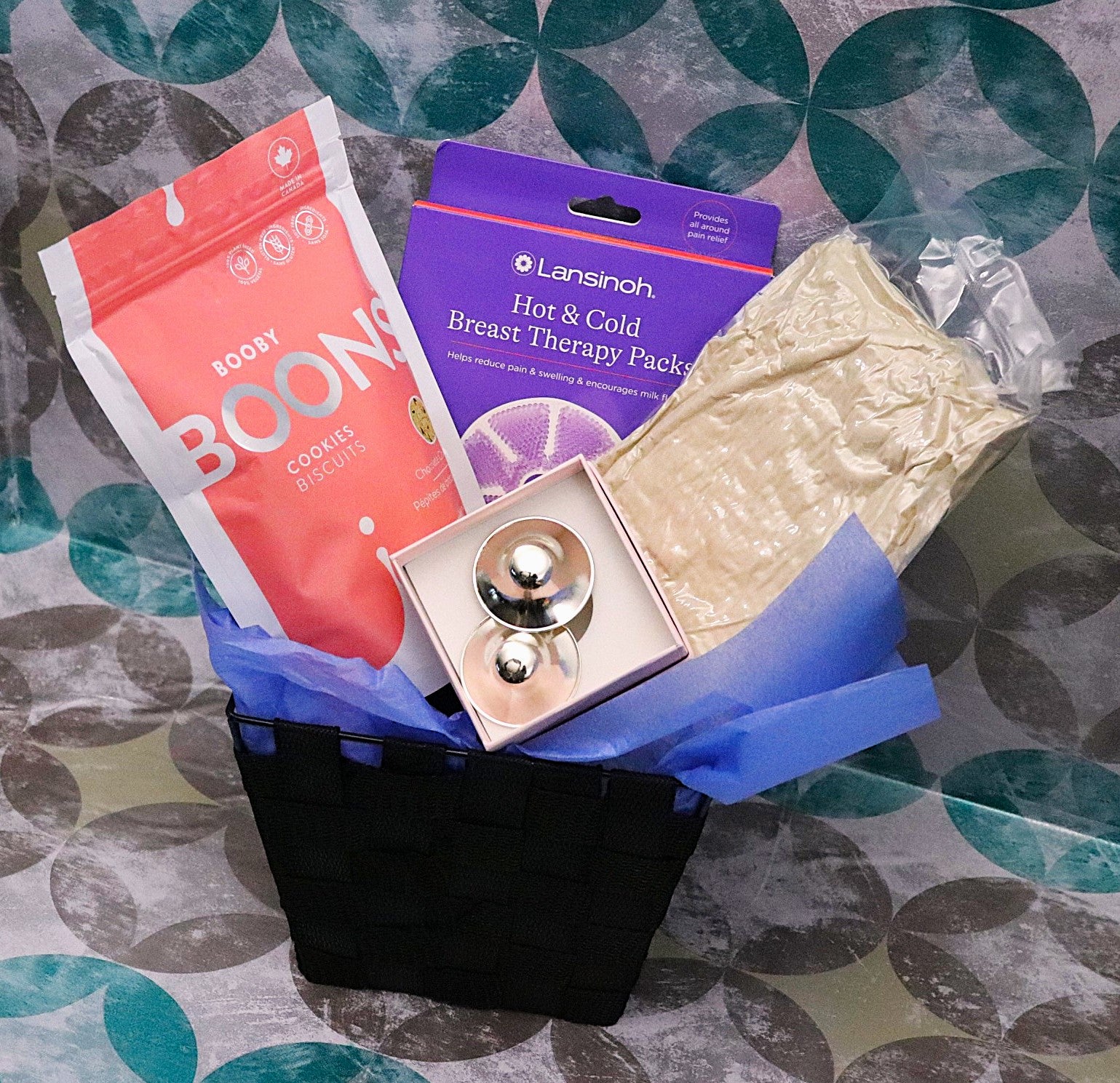 Our Basic Kit includes essential items: silver nipple shields, a pack of soothing therapy pads, delicious lactation cookies, and a stylish nursing cover. This thoughtfully curated selection is perfect for those just starting, offering a glimpse into the must-have products that will support you along the way.